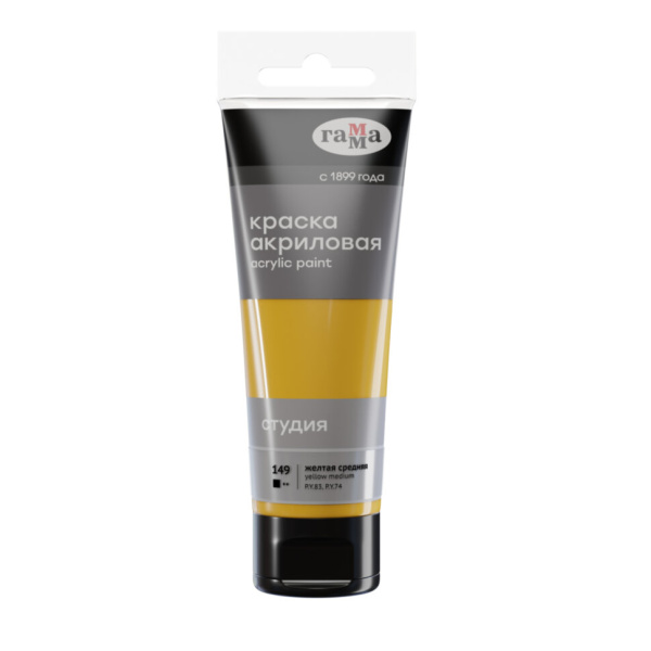 —Краска акриловая художественная Гамма 'Студия' желтая средняя, 75мл, 280220149