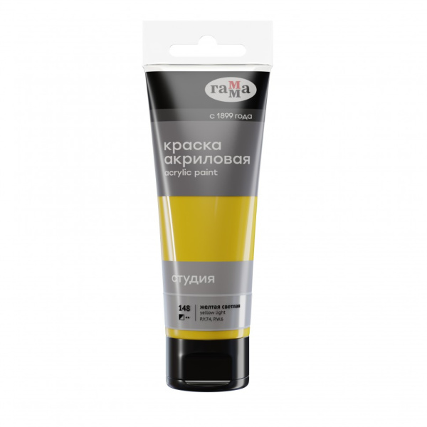 —Краска акриловая художественная Гамма 'Студия' желтая светлая, 75 мл, 280220148