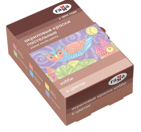 —Краски акриловые декоративные Гамма 'Хобби', 06 цветов, 20 мл, картон. упаковка, 180120228