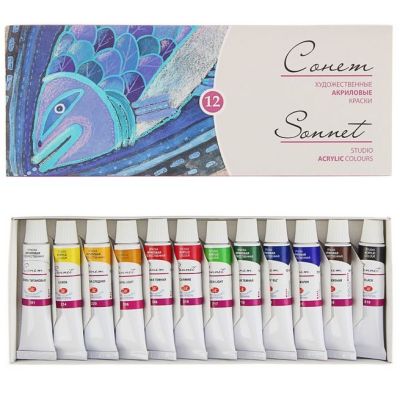 Краски акриловые "Сонет", 12 цветов , 10 мл/туба, 2841095