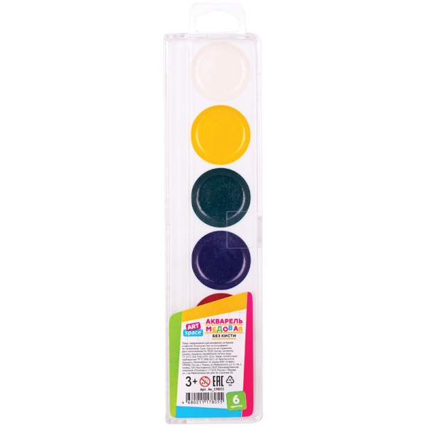 Акварельные краски 6 цв. ArtSpace медовая, пласт. уп., европодес, без кисти, Ак_19805