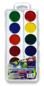 —Акварельные краски 12 цв, медовые , пласт. уп, европодес , без кисти, AR-9716