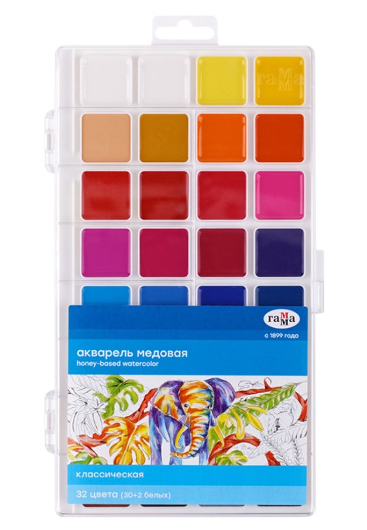 —Краски акварельные медовые полусухие 'Гамма', 32 цвет, 1009199