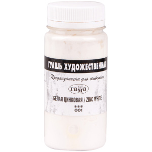 Гуашь художественная Гамма, белая цинковая, 110мл /20/0/1 0.20.В110.001