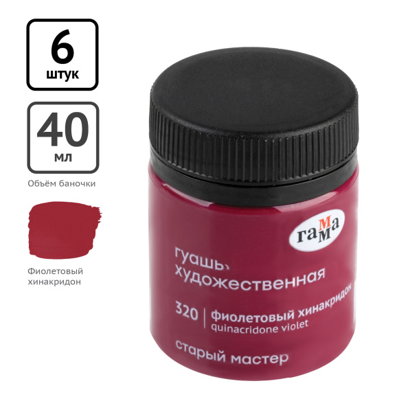 —Гуашь художественная Гамма 'Старый мастер' фиолетовый хинакридон, 40мл, 12112040320