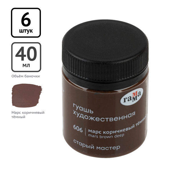 —Гуашь художественная Гамма 'Старый мастер' коричневый темный, 40мл, 12112040606