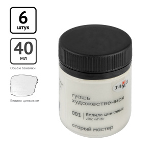 —Гуашь художественная Гамма 'Старый мастер' белила цинковые, 40 мл, 12112040001