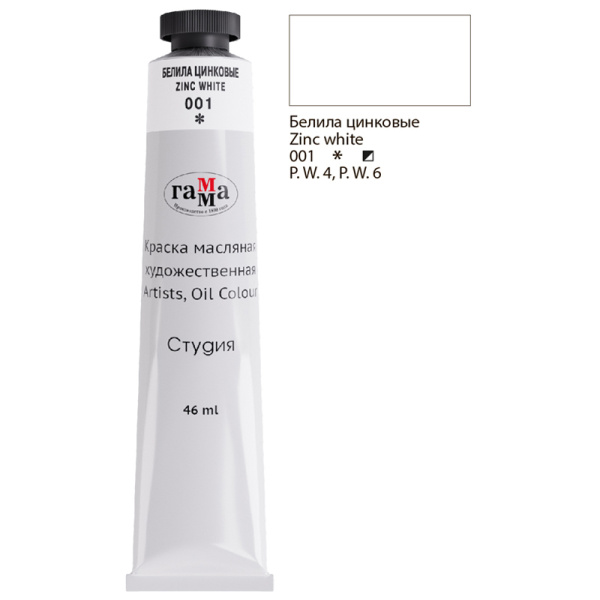 —Краска масляная художественная Гамма 'Студия' , 46 мл ,туба , белила цинковые, 0.00.А46.001