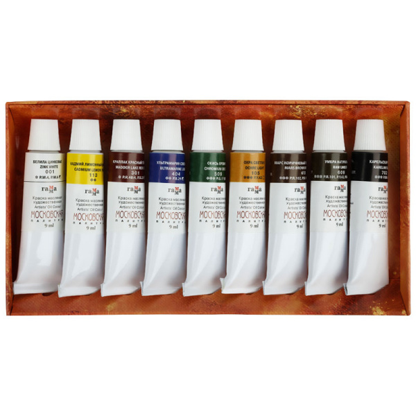 Краски масляные Гамма "Московская палитра" 9цв, туба 9мл, 201008
