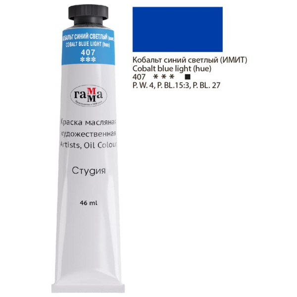 —Краска масляная художественная Гамма 'Студия' , 46 мл ,туба , кобальт синий, 0,00.А046.407