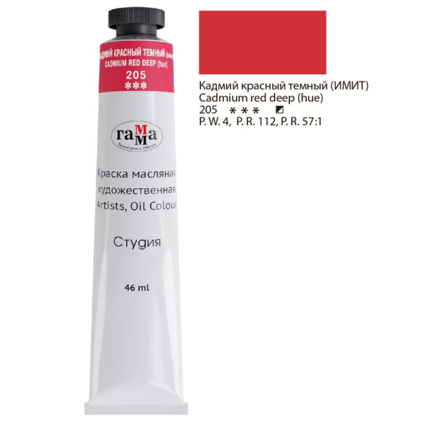 Краски масляные Гамма 'Студия' 46 мл, кадмий красный темный, 0,00.А046.205