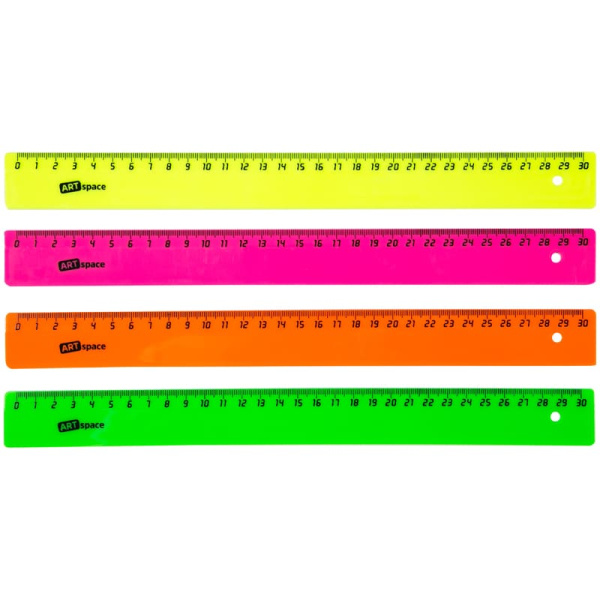 —Линейка пластиковая 30 см. ArtSpace, флуоресцентная, ассорти. 256252