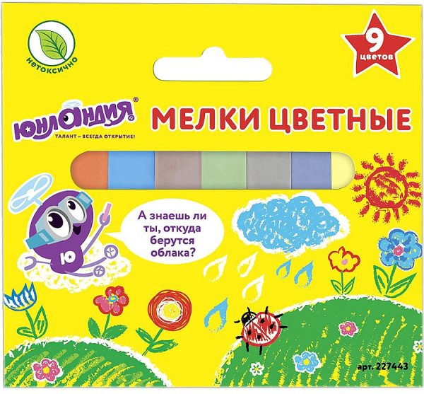 Мел цветной ЮНЛАНДИЯ , набор 9 шт , квадратный, 227443