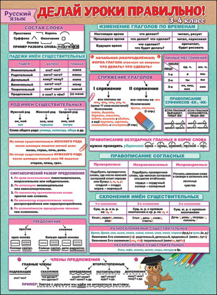—Плакат А2 ,'Делай уроки правильно. Русский язык. 3-4 класс' 440х595 мм, 0800538