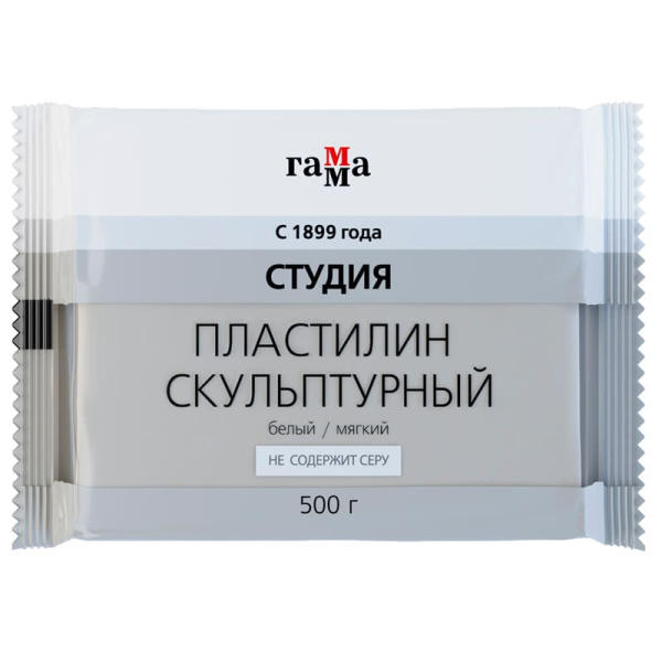 —Пластилин скульптурный Гамма 'Студия', белый, 500 гр., мягкий, 2.80.E050.004.1