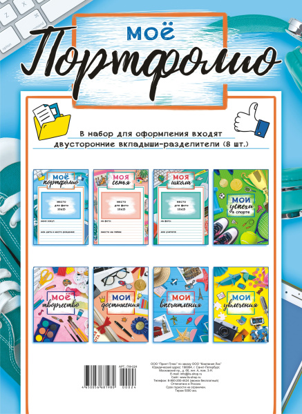 —Вкладыши в портфолио ПринтПлюс , 8 л., двухсторонние, ПФ-024