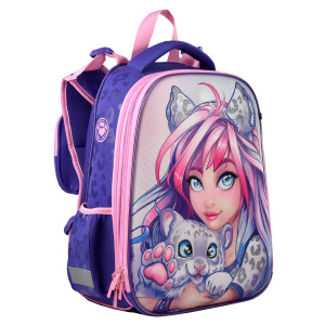 —Ранец школьный "Девушка с барсом", (27х37х13 см), полиэстер , ЭВА панель, 62991