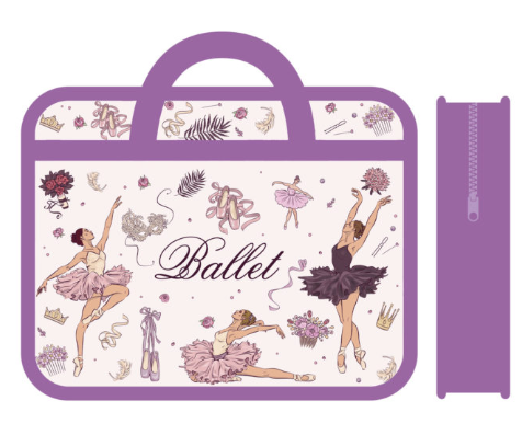 Папка для тетрадей А4 , молния вокруг , БАЛЕРИНЫ, ПМ-А4-25