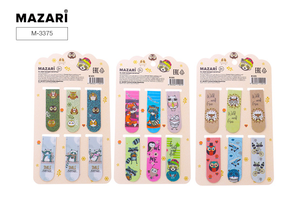 —Набор закладок магнитных СОВУШКИ;ЕНОТЫ, 6 шт., 5,8х2 см, ассорти 3 дизайна, M-3375