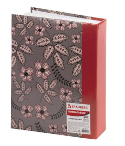 —Фотоальбом BRAUBERG на 200 фото, 10х15 см, твердая обложка, серый с красным, 391121