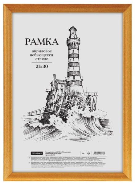 —Фоторамка 21х30 деревянная OfficeSpace №1, акриловое небьющееся стекло, янтарь 236295