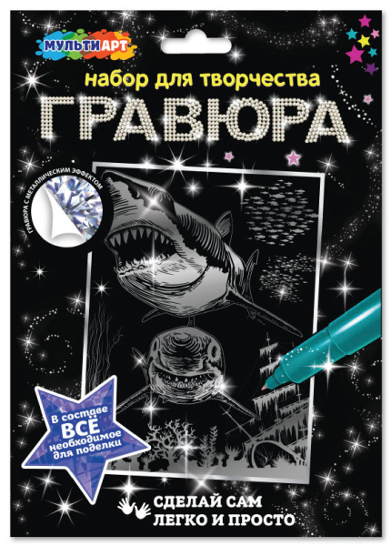 —Гравюра серебро, 'Мульти-Арт', 18х24 см, дизайн ассорти, SCRATCH;18х23