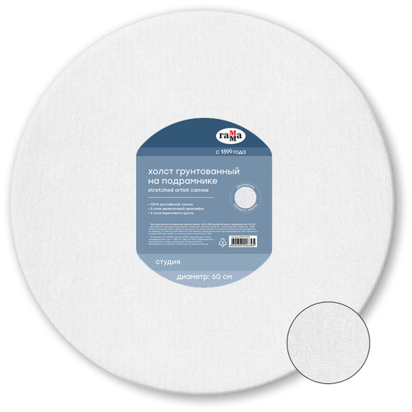 —Холст на подрамнике Гамма 'Студия' диаметр 60 см круглый , 100% хлопок , среднее зерно, 1009202082