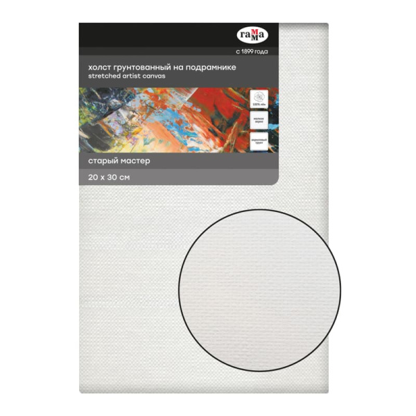 —Холст на подрамнике Гамма 'Старый Мастер' 20х30 см., 100% хлопок, 280г;м2, мелкое зерно, 100920204