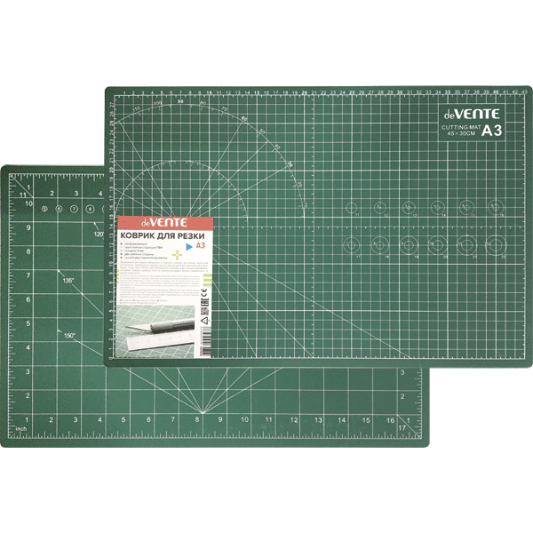 —Коврик для резки А3, 'deVente', зеленый, непрорезаемый, 3 мм, двухсторонний, трехслойный, 4200904