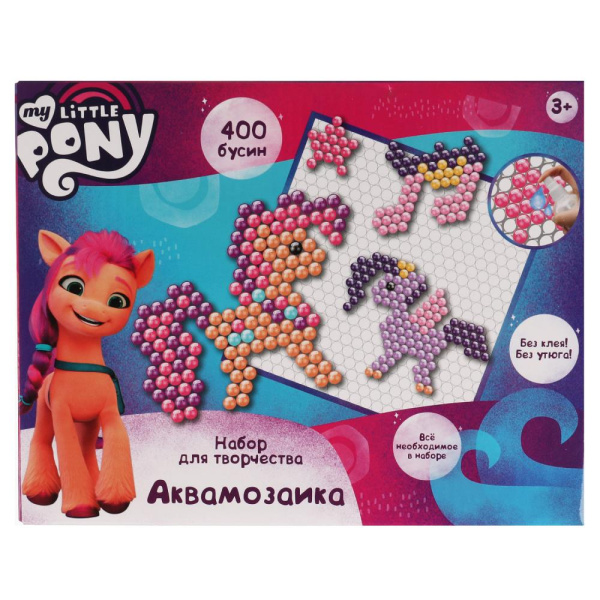 Набор д;детского тв-ва МОЙ МАЛЕНЬКИЙ ПОНИ аквамозаика 400 бусин МУЛЬТИ АРТ, AB400-MLP1