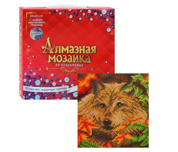 —Алмазная мозайка, 'Волк в осенней листве' 20х20 см, AS20015