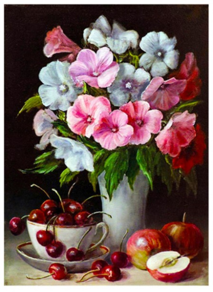 —Алмазная мозаика с мольбертом, 'Натюрморт с цветами', 21х25 см, частичная выкладка, M-11866