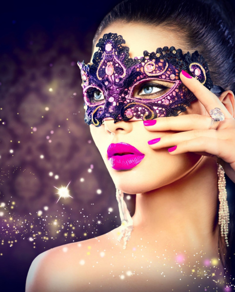 Алмазная мозайка, 'Яркая девушка в маске' 22х32 см, AS22075