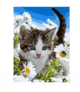 —Алмазная мозаика с мольбертом, 'Котенок в ромашках', 21х25 см, частичная выкладка, M-11863