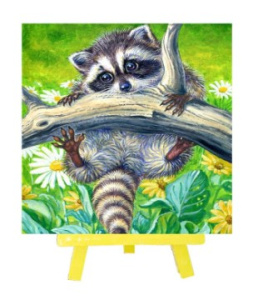—Алмазная мозаика с мольбертом, 'Ёнот на ветке', 21х25 см, частичная выкладка, M-10350