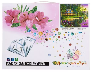 —Алмазная мозайка ДЕТСКИЙ ЛУЧ с подрамником (40 x 30 см.) ДОМИК У ОЗЕРА арт. GB74923