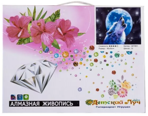 —Алмазная мозайка ДЕТСКИЙ ЛУЧ с подрамником (40 x 30 см.) ВОЛК И ЛУНА арт. GB74841