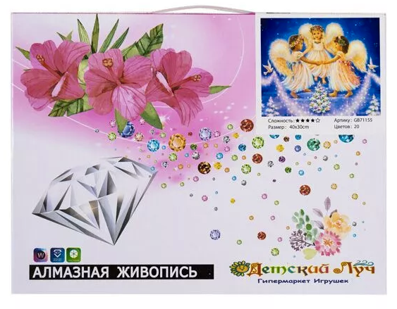 —Алмазная мозайка ДЕТСКИЙ ЛУЧ с подрамником (40 x 30 см.) ТРИ АНГЕЛОЧКА арт. GB71155