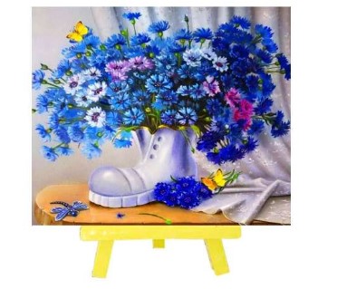 —Алмазная мозаика с мольбертом, 'Букет васильков', 21х25 см, частичная выкладка, M-10382