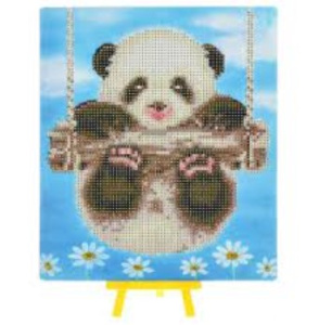 Алмазная мозаика с мольбертом, 'Панда на качелях', 21х25 см, частичная выкладка, M-10349