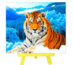—Алмазная мозаика с мольбертом, 'Тигр на снегу', 21х25 см, частичная выкладка, M-10398