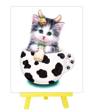 —Алмазная мозаика с мольбертом, 'Кот коровка', 21х25 см, частичная выкладка, M-10357