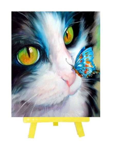 Алмазная мозаика с мольбертом, 'Котенок с бабочкой', 21х25 см, частичная выкладка, M-10386