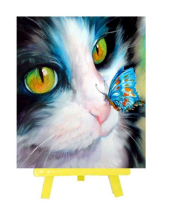 —Алмазная мозаика с мольбертом, 'Котенок с бабочкой', 21х25 см, частичная выкладка, M-10386