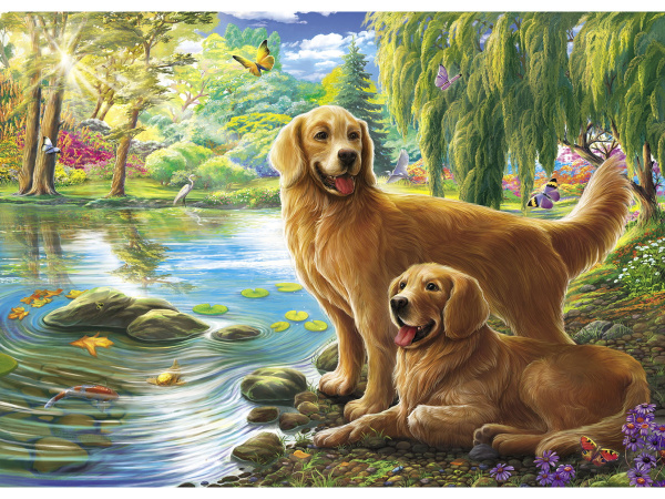 Алмазная мозаика 30х40 см. с полн. заполн. (24цв.) 'Рыжие собаки у озера', НД-8579