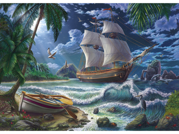 Алмазная мозаика 30х40 см. с полн. заполн. (26цв.) 'Корабль в лунном свете', НД-8585