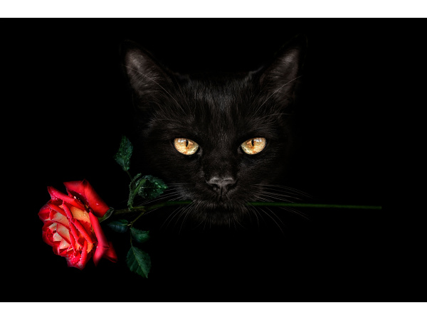 Алмазная мозаика 30х40 см. с полн. заполн. (28цв.) 'Черный кот с розой', НД-8580