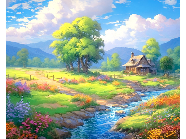 Алмазная мозаика 40х50 см. с част. заполн. (30цв.) 'Летний домик на поляне, НД-0594