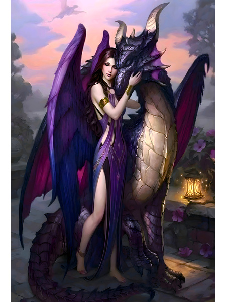 Алмазная мозаика 30х40 см. с полн. заполн. (30цв.) 'Девушка и дракон', НД-0332