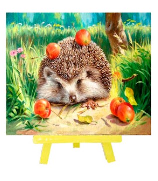 —Алмазная мозаика с мольбертом, 'Ёжик с яблоками', 21х25 см, частичная выкладка, M-10368